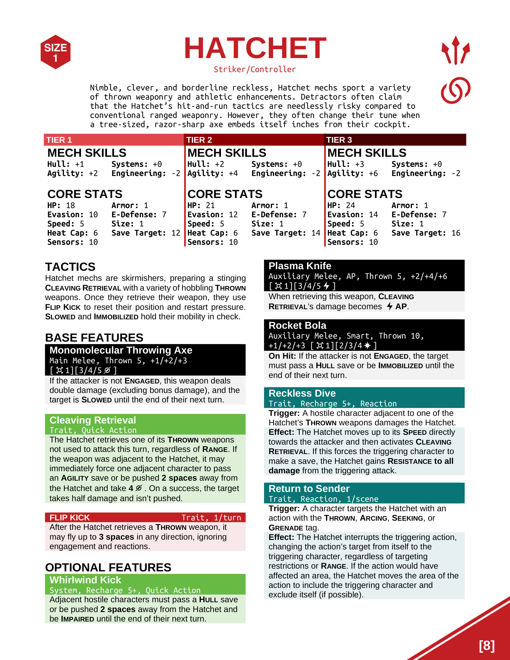 - The Hatchet, a nimble Striker/Controller thrown weapon specialist that keeps its foes just outside of arms’ reach.