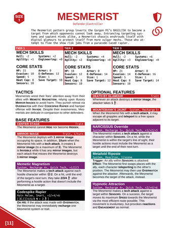 - The Mesmerist, a hypnotic, tech-oriented frontline Defender/Controller that demands the attention of all hostiles nearby.